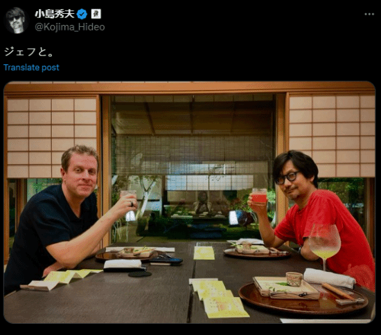 据相关消息,TGA主持人杰夫·吉斯利于近期在社交平台上晒出了游戏制作人小岛秀夫的合影,并表示和在炎热的夏夜和小岛团队进行了谈话,而随后小岛秀夫也在晒出了多张照片,展示了当晚的餐食以及就餐环境,让我们一起来了解一下吧。