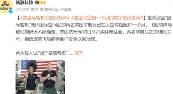 据了解,美国航天局10日举行媒体电话会,两名宇航员在连线时表示,相信波音飞船能将他们安全送回地球。
