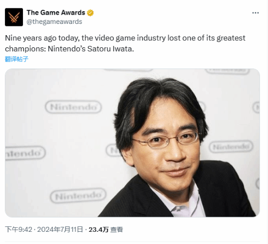 据相关消息,任天堂曾于2015年7月13日发表讣告称,任天堂社长岩田聪因患胆管癌于2015年7月11日医治无效去世,享年55岁,而据相关消息,岩田聪逝世9周年的日子也已于近期到来,而TGA官方也在这天发文对岩田聪进行缅怀,并表示电子游戏行业失去了最伟大的领袖之一,让我们一起来了解一下吧。