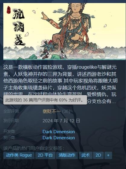 据了解,由Dark Dimension工作室开发并发行的《西游琉璃盏》是一款国产水墨风横板动作冒险游戏游戏,该作已于在Steam平台正式发售,国区首发折扣价52.2元。目前Steam评价为褒贬不一,让我们一起来了解一下这款游戏吧。