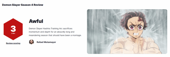 以上,便是小编收集到的有关《鬼灭之刃》第四季 IGN 3分的全部内容,对这部动画感兴趣的朋友们可以关注一下,那么,让我们下期再见。