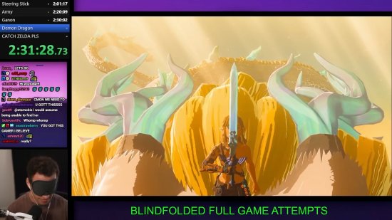据了解,海外知名主播PointCrow于近期在社交平台上发布了自己挑战蒙眼通关《塞尔达传说:王国之泪》的视频,在视频中,这位博主全程蒙眼通过了地图上的各种地形、完成神庙挑战、击败盖侬和黑龙并最终救出了塞尔达公主,令人印象深刻,而通关总时长2小时48分钟51秒,让我们一起来了解一下吧。