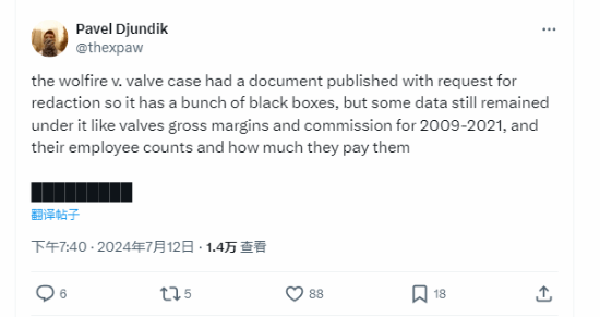 这场反垄断官司的原告Wolfire Games将V社的员工数作为批判他们的原因之一——认为V社在Steam这种全球平台巨头上的投入与其收益完全不成正比;此前更是有前V社员工在采访时称公司的“扁平化”结构伤害到了员工利益。