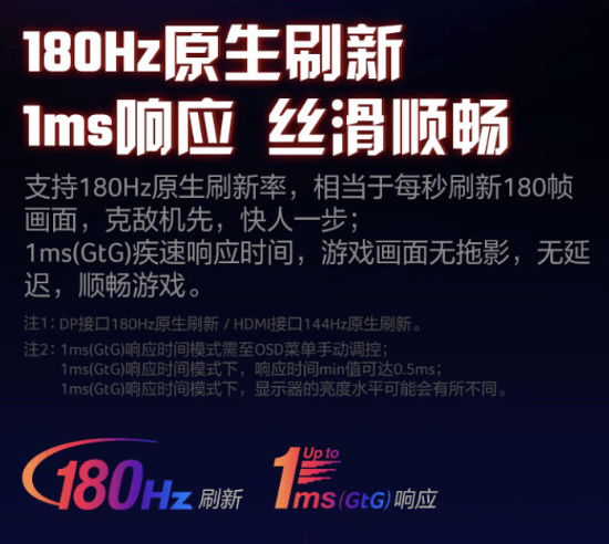 此外,这款显示器支架支持倾斜;显示器本体支持100x100mm VESA壁挂,提供2个HDMI 2.0接口、1个DP 1.4接口、1个3.5mm音频输出接口。