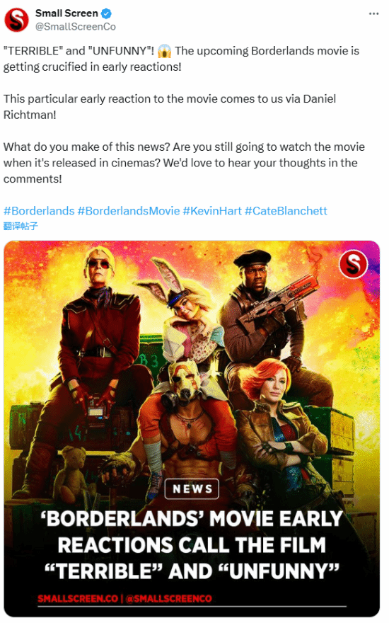 有博主分享了业内人士Daniel Richtman找到的评论,观众们表示电影糟糕透顶还不搞笑。但对于原作游戏的粉丝来说,这些评论并未动摇它们对电影的信心。有玩家表示:“糟糕和无趣正是《无主之地》的风格。”还有玩家称:“《无主之地》的幽默感只能在电子游戏等媒介里发挥作用,且一直都是这样。”