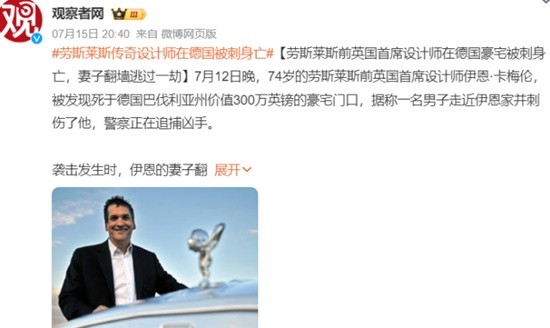 以上,便是小编收集到的有关劳斯莱斯传奇设计师被刺身亡的全部内容,对此事感兴趣的朋友们可以关注一下,那么,让我们下期再见。