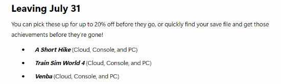 另外,三款游戏将于7月31日出库: