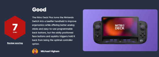 据相关消息,第三方厂商crkd于近期推出了适用于Switch、Switch OLED的手持控制器Nitro Deck ,该产品可以替换原装JOY-CON手柄,售价70美元,而外媒IGN也在近日分享了该设备的测评,并给其打出了7分评价,让我们一起来了解一下吧。