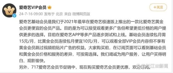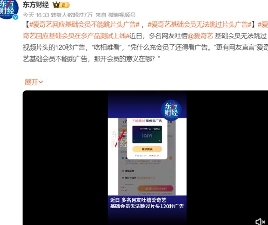 以上,便是小编收集到的有关爱奇艺回应基础会员不能跳片头广告的全部内容,感兴趣的朋友们可以关注一下,那么,让我们下期再见。