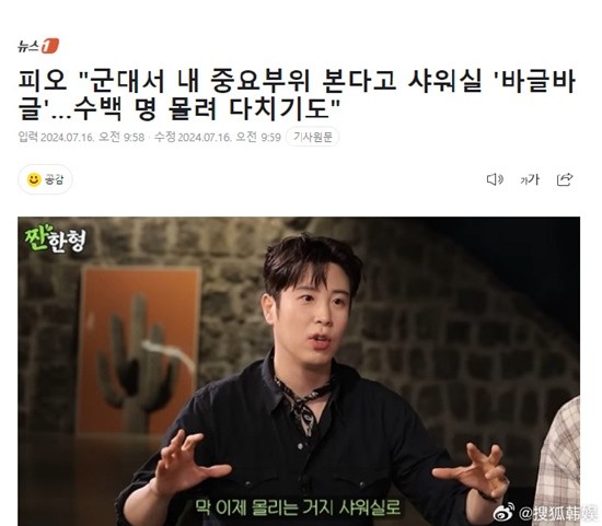 据相关消息,韩国P.O(表志勋)于近期在参加一档综艺节目是爆出了其入伍期间被百人观看洗澡,让我们一起来看看他是怎么说的吧。