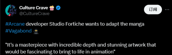 此外,Studio Fortiche还透露很想制作一部《浪客行》动画,改编自井上雄彦创作的同名武侠漫画。Studio Fortiche联合创始人Pascal Charrue表示,如果有机会改编一部作品,团队第一时间想到的就是《浪客行》,因为该系列具有令人难以置信的深度和令人惊叹的艺术作品。