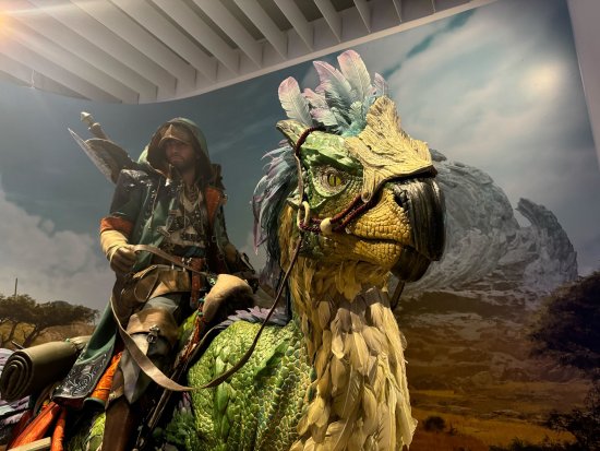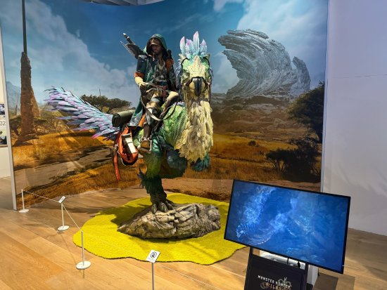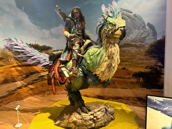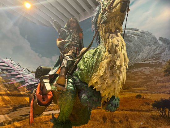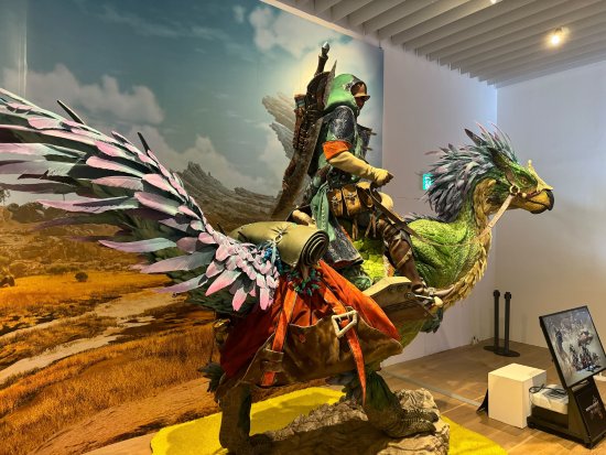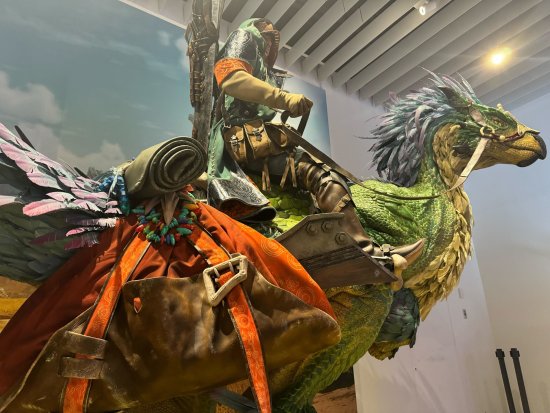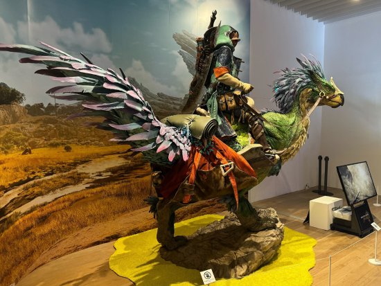 在展览现场,《怪物猎人:荒野》全新骑乘动物鹭鹰龙将首次以雕像的形式亮相,其做工相当细致,羽毛、配饰悉数还原。