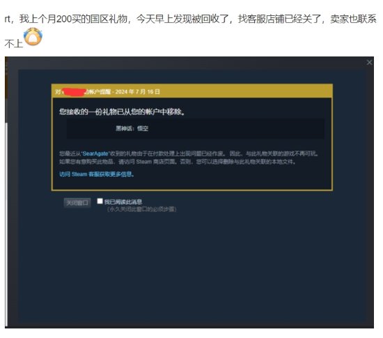 以上,便是小编收集到的有关玩家淘宝买steam国区礼物被回收的全部内容,对此事感兴趣的朋友们可以关注一下,那么,让我们下期再见。