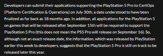 此外,据透露,从9月15日起,所有提交给索尼发行的PS5游戏应用程序也必须支持PlayStation 5 Pro。