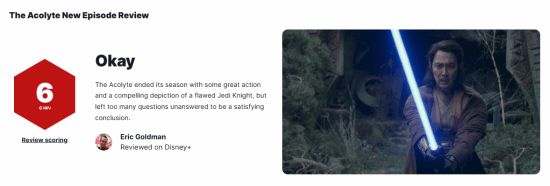据了解,电视剧《星球大战:侍者》已于近期正式完结,而IGN也公布了这部电视剧的大结局的评分,据了解,IGN这这部大结局打出了6分,让我们一起来看看IGN是怎么评价这部剧的吧。