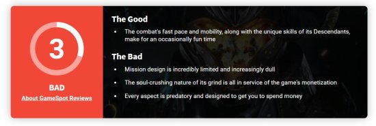 据相关消息,由Nexon开发的刷宝射击游戏《第一后裔》已于此前正式上线,而外媒Gamespot于近期在社交平台上发布了其对这款游戏的评测文章,本次该外媒给这款游戏给出了3分的评价,让我们一起来看看其是怎么评价这款游戏的吧。