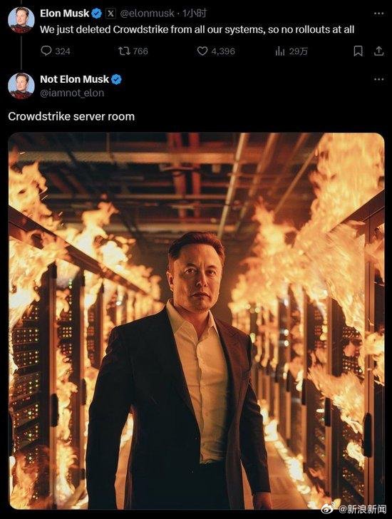 一向讨厌复杂步骤的马斯克则给出了他的解决方案——直接在所有系统中全部删掉CrowdStrike的软件。说完这句话似乎觉得不过瘾,他还附上了一张“火烧CrowdStrike机房”的AI生成图片。