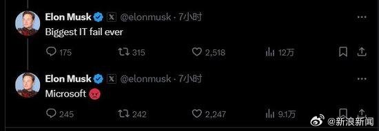 在整件事情的真相浮出水面前,马斯克已经对着微软输出过一波愤怒,指责这是史上最大的IT失败,点名微软并配上一个“愤怒”的表情。
