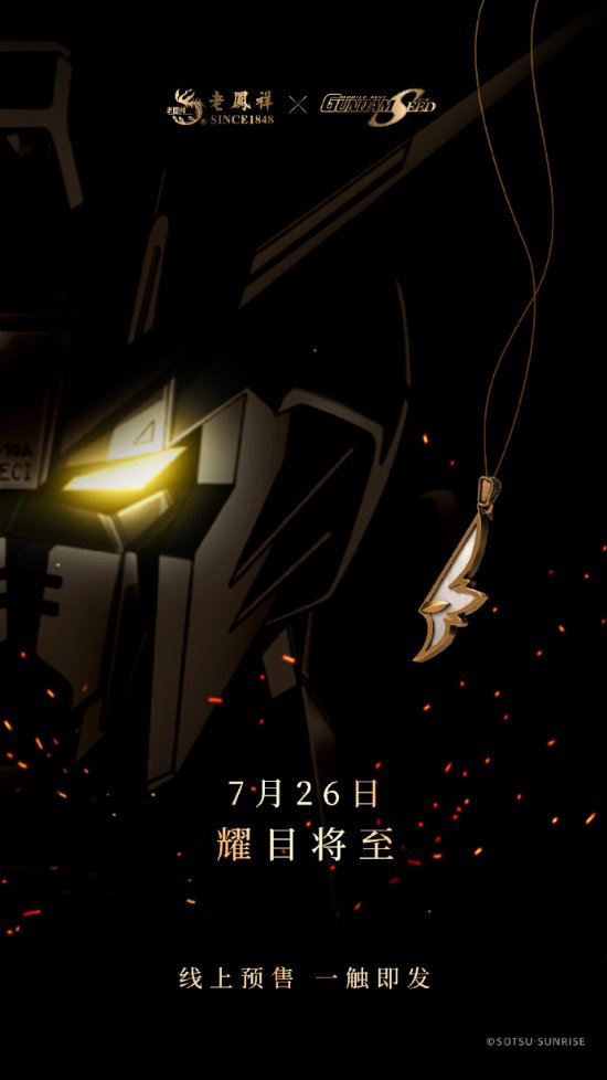 据相关消息,万代南梦宫中国官方于近期在社交平台上宣布,其将与百年国民品牌「老凤祥」开启跨界合作,并发布了一张宣传海报,据了解,官方暂未说明合作具体细节,预计将推出与高达主题限量饰品。预售将于7月26日上线。敬请期待。