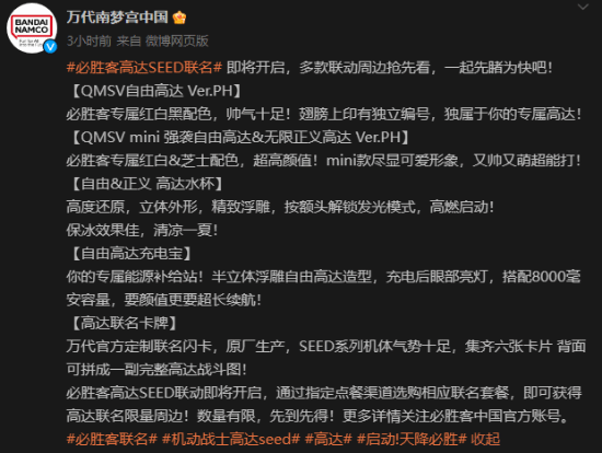 除此之外,机动战士高达SEED还与必胜客进行了联动,通过指定点餐渠道选购相应联名套餐,即可获得高达联名限量周边。