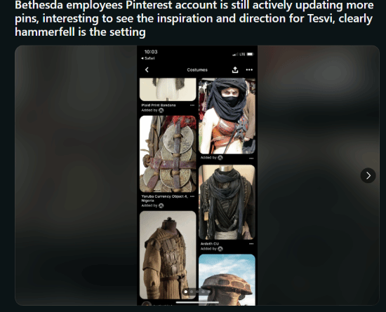 日前,贝塞斯达高级插画师Ray Lederer的Pinterest账户(视觉风格灵感、创意查找平台)更新了大量内容,其关注的很多图片都有一个共同点,那就是都以北非、摩尔人和中东文化中的人物、艺术、建筑和景观为主题,而这些文化早已被确定为《上古卷轴》中落锤省和红卫人的灵感来源。粉丝认为这进一步暗示了《上古卷轴6》设定在落锤省的可能性。