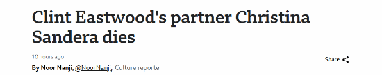 据了解,伊斯特伍德在这份声明合作补充道:“Christina是一位可爱的、且有爱心的女人,也是我生命中的重要组成部分,我会非常想念她。”