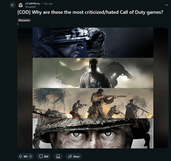 据了解,《使命召唤》系列最初于2003年推出了首部作品,时至今日,该系列已推出十几款游戏,系列销量累计已售出超过4.25亿份,而该系列也是电子游戏史上最成功的系列之一,而据相关消息,近期Reddit上一篇“最令人讨厌的使命召唤游戏”帖子引发热议,让我们一起来了解一下吧。
