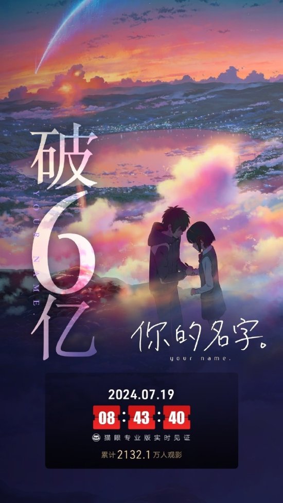 据相关消息,电影《你的名字。》曾拿下2016年度日本本土影片票房冠军,并保持了中国影史日本动画电影票房冠军长达7年,直到2023年4月才被《铃芽之旅》超越,而据灯塔专业版公布的数据显示,该片内地重映票房已超2361万,内地总票房累计突破6亿,让我们一起来了解一下吧。