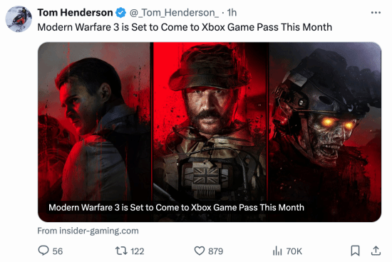 本月初,知名记者Tom Henderson也发布消息称,《使命召唤20》将于本月晚些时候登陆XGP。多个消息源表明,游戏会在下半月进入XGP。