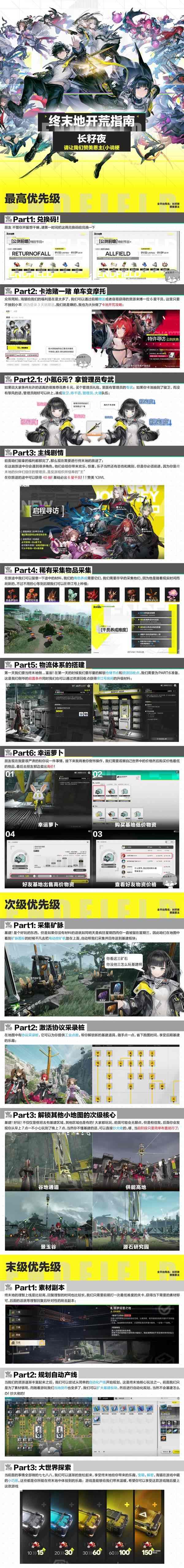 《明日方舟终末地》即将上线,想了解前期该做些什么的玩家可以看看下方由“长籽夜”准备的《明日方舟终末地》新手开荒指南,希望对你们有帮助。
