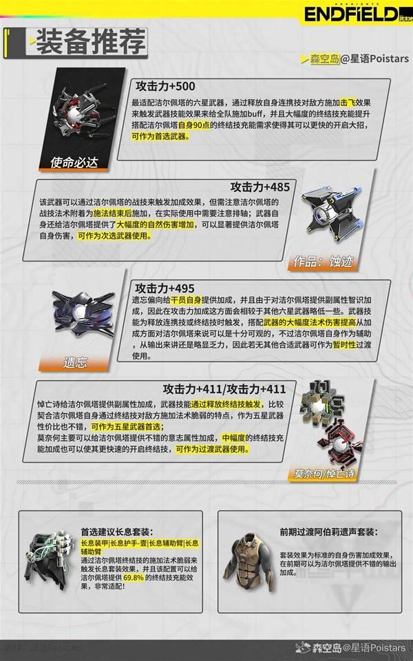 《明日方舟终末地》中洁尔佩塔的UP池已经开启,大家可能都在琢磨她该怎么培养吧?接下来就分享一下“星语Poistars”整理的洁尔佩塔培养指南,希望能给玩家们一些参考。