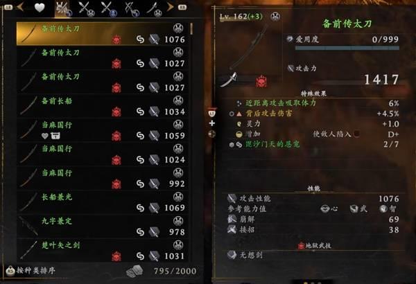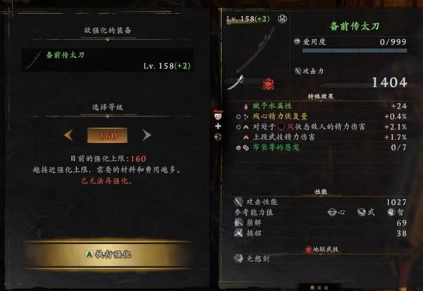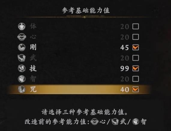 以太刀为例,它的参考能力值是心、武、智,这三个属性加点越多,太刀的攻击力越高,而改造就是把这三个属性变成其他的属性。。