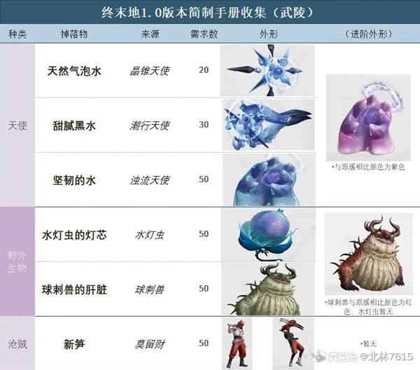 本篇攻略适用于日常跑图如送快递/材料采集/种田时的顺路收集,内容包括简制手册材料及对应敌人来源、跑图点位、能量淤积点掉落。