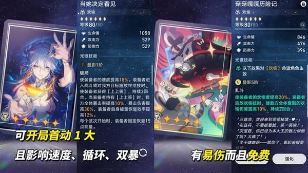 免费4星「菇菇嘎嘎历险记」欢愉技可给敌方挂上2回合的10%欢愉易伤,也是很不错的光锥。