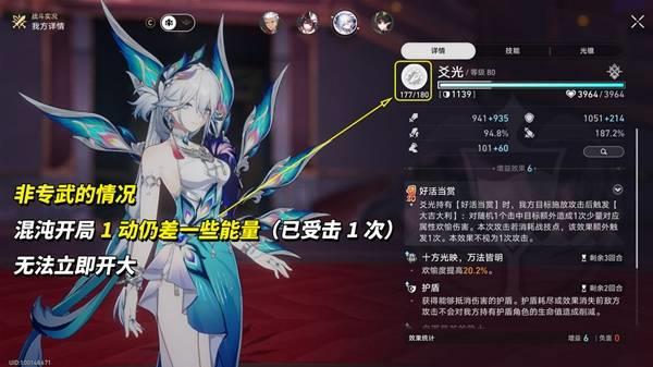 爻光的普攻与战技都是30点回能,对局中可多普攻,战技用于维持【结界】剩余回合数即可。终结技也是回合型增益,从覆盖率角度,最好在主C行动时施放终结技,可以让BUFF多维持1个回合,若即将亏充能正常放也行。