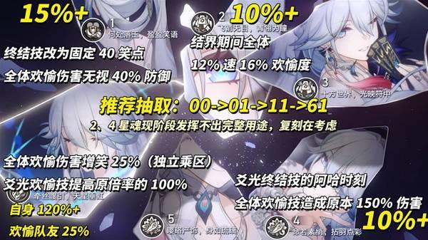加金策略爻光按以下顺序加配(星魂/光锥):00->01->11->61。