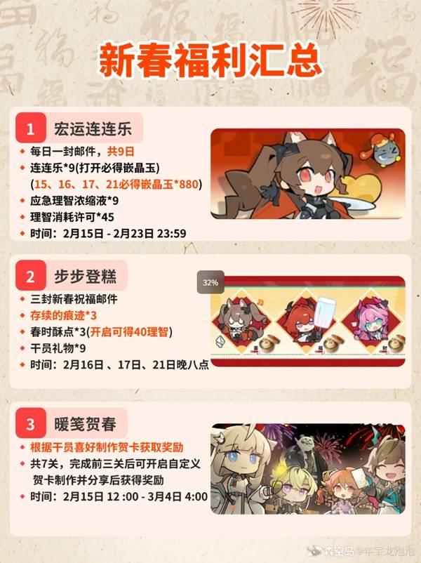 《明日方舟终末地》在春节期间推出了多个精彩活动,参与这些活动能收获不少奖励。由“年宝龙泡泡”整理的春节福利汇总现已出炉,大家赶紧看看有什么好玩的吧。