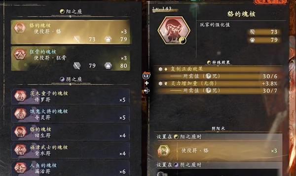 阴之座:茨木童子的魂核、饿鬼大将的魂核、貉的魂核、祸津武士的魂核、人鱼的魂核
