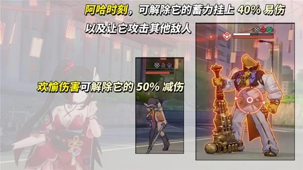 ①摇滚狂徒。我方发动阿哈时刻,可打断它的蓄力技能获得10笑点使其挂上40%易伤,同时使它陷入狂奏状态攻击其他敌人。