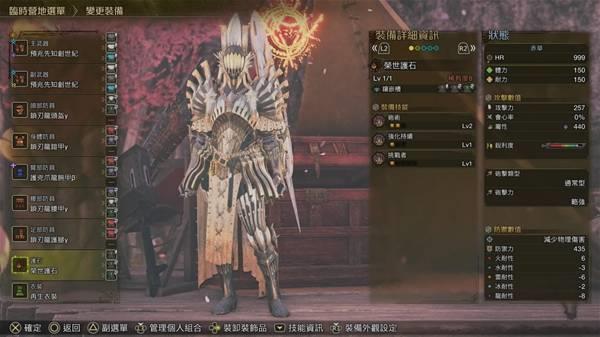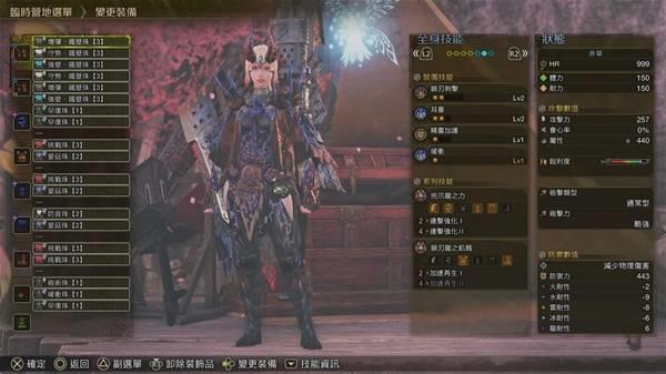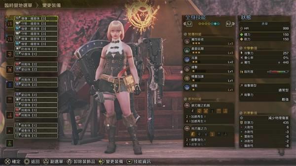 这套主打万能,锁刃吸血减少需要收刀的压力继续输出,逆袭、连击、凶爪 霸主的增伤,另外换一下珠子可以轻松达到火抗10防燃烧