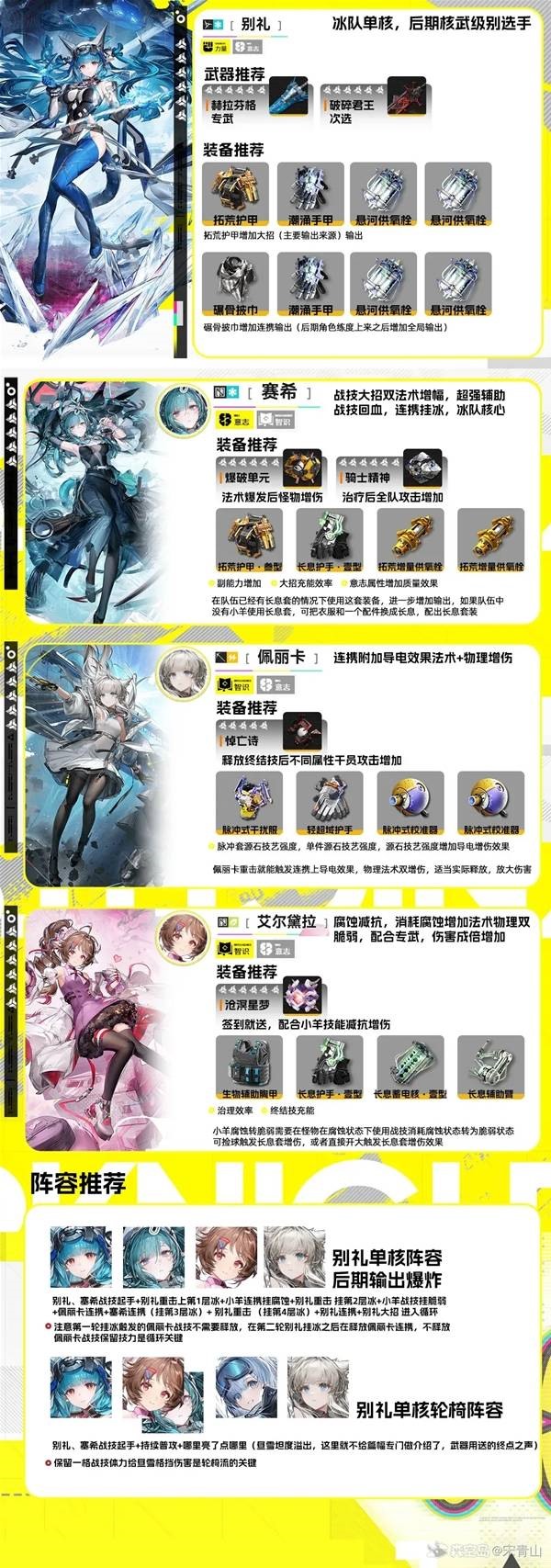 《明日方舟终末地》中的别礼是六星冰属性角色,单核阵容怎么搭配呢?今天和大家分享一下别礼单核阵容的养成建议,一起了解一下吧。