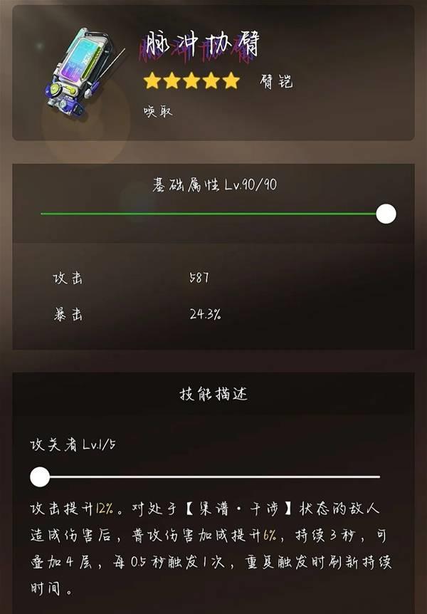 高性价比替代:脉冲协臂(二期常驻五星)。暴击副属性,攻击提升并对处于【集谐干涉】状态的敌人叠加普攻伤害加成,可达专武约90%的水平。