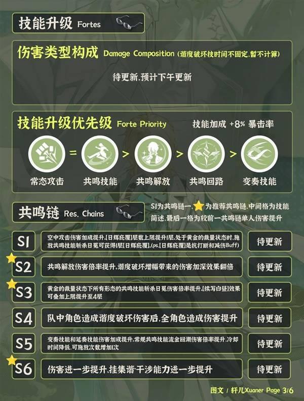 ③陆·赫斯主要输出类型为普攻伤害。共鸣链推荐抽取2/3/6链。基本都是伤害倍率提升以及Buff层数上限提升,纯数值提升。这次0链即可提供免疫打断和减伤是比较慷慨的。
