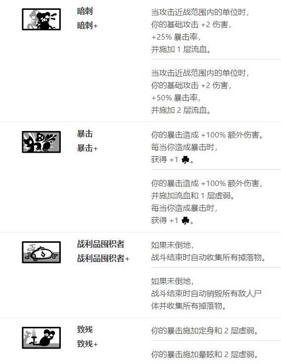 被动强度1.背刺者 3分 ,如果不是出门自带一般不会抓,很多怪是没有背让你打的,而且盗贼不是很缺这个必爆手段。
