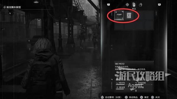 剧情后来到鹪木市的大街上,打开物品栏,看到【武器】S&S M232手枪、【文件1/75】调查报告。调查报告可以展开阅读。