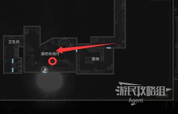 在酒吧休闲厅的吧台的柱子上(下图圈出位置),拿到女主的照片,照片背面有【老旧钥匙】。