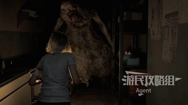 待怪物走后,从203号病房出来,再次去201号病房的路上,怪物会从护士站撞开门拦截你。