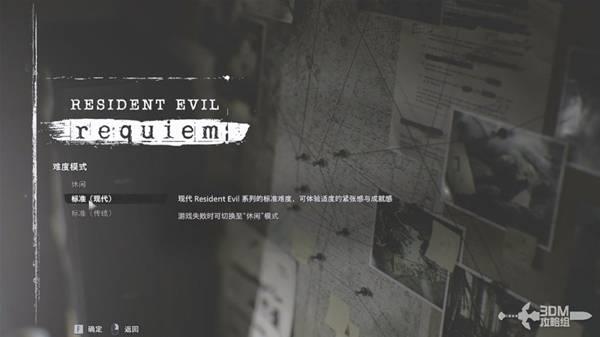 设置全部改好以后会让我们选择游戏难度。笔者这里选择的是标准(现代),选择(传统)的话,格蕾丝一部分自动保存将受限,别的没有区别。