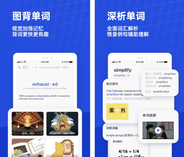 这是一款非常好用的学习英语单词的软件,这里不仅有文字记忆,还有图片视频帮助用户记忆单词,在情景中学习可以增加学习效率。用户可以自己的复习情况和学习进度设置规划每天要学多少单词,学过的单词还会重复出现帮助用户增强记忆哦,真的是一款很有效的背单词app。
