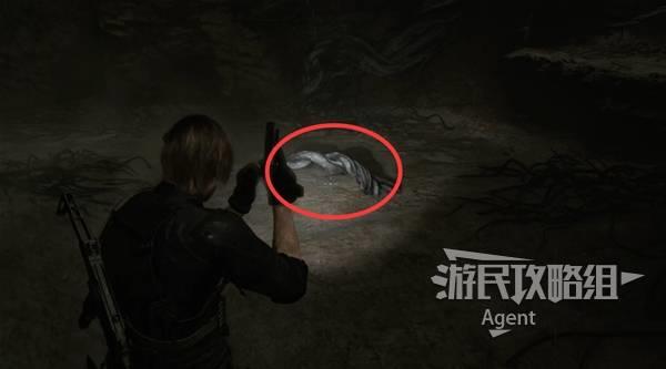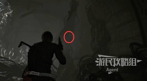 下来坑底,遇到【幼体2】,打掉后往前走,看到有东西吊在高处。